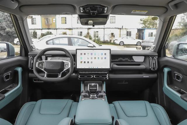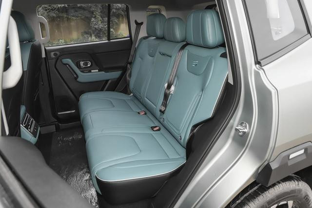 车身方方正正,棱线跟“肌肉线条”似的往外鼓,配上粗壮熏黑饰件、车顶行李架、固定脚踏板,越野的“野劲儿”直接写在脸上!更惊喜的是——传统机械门把手、双层隔音玻璃、后排隐私玻璃均有配备!硬核之外,通勤时也能享受“安静私域”,简直是 “刚柔并济” !