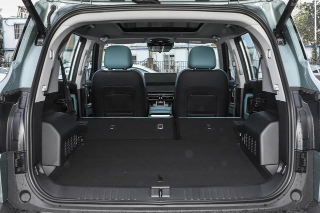储物空间方面,后备箱布局规整,更暗藏45L下沉式储物格(露营灯、折叠桌这类小物件,轻松 “隐身收纳”);后排座椅完全放倒后,直接拓展出近2米空间——既是“双人露营大床房”(省了帐篷钱),也是“大件搬运通道”(自行车/行李箱轻松塞),户外撒野或日常搬家,都能 “一键适配”。
